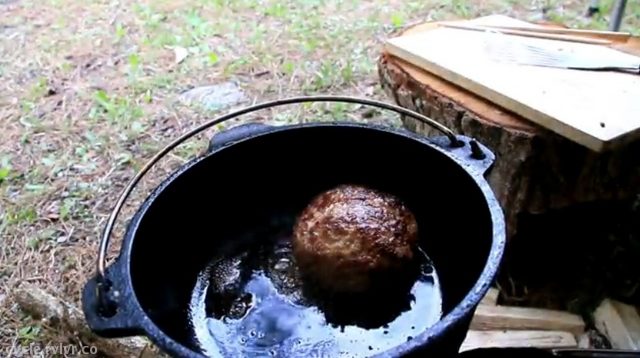 深夜に見たらいけない...ハンバーグをダッチオーブンで作る動画
