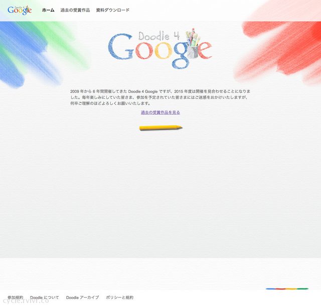 Googleは、2009年から2014年まで6年連続開催してきたGoogleロゴのデザインコンテスト「Doodle 4 Google(ドゥードゥル フォー グーグル)」について、2015年度は開催を見合わせることを発表した。