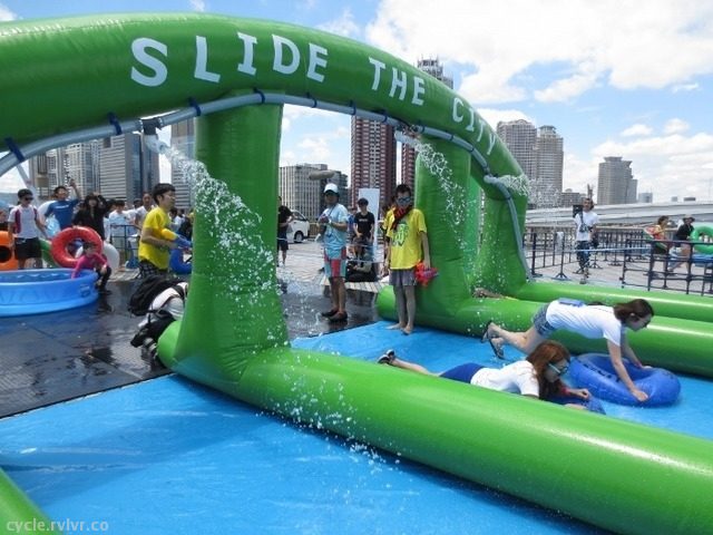 日本発上陸の「スライド・ザ・シティ(Slide the City)」に行ってきました! 「スライド・ザ・シティ」とは街中で全長300メートルのウォータースライダーを楽しむ、米国発の路上イベント。