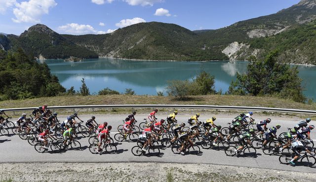 フランスの2015年クリテリウム・デュ・ドーフィネ、6月11日の第5ステージ。アメリカのティージェイ・バンガーデレン(BMCレーシング)は、チームメイトのローハン・デニスからリーダージャージを引き継ぎ、総合首位に立った。