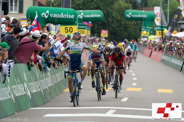 2015年ツール・ド・スイス、6月16日の第4ステージはフリムス~シュバルルツェンバッハ間の193.2km。オーストラリアのマイケル・マシューズ(オリカ・グリーンエッジ)が上りスプリントを制して、ツール・ド・スイス自身初のステージ優勝を挙げた。