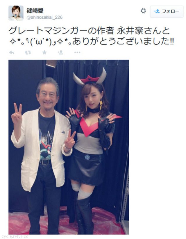 グラビアアイドルの篠崎愛が18日、永井豪原作のアニメ「グレートマジンガー」のコスプレ姿をTwitterで披露。ファンから絶賛されている。