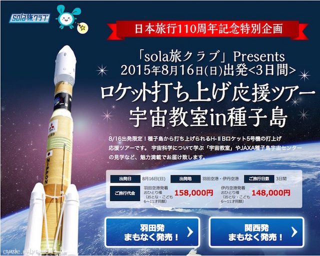 日本旅行は、8月16日から2泊3日の日程で、創業110周年を記念した特別企画ツアー「宇宙教室in種子島」を発売する。種子島でのロケットの打ち上げ見学やJAXA種子島宇宙センターを見学できる2泊3日の特別なツアーだ。