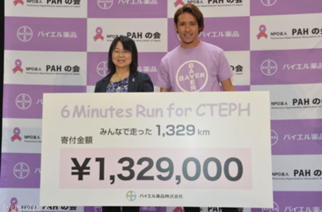 バイエル薬品は6月21日、東京都内にあるフットサルコートのラモスフィールドで「6 Minutes Run for CTEPH」の結果発表会を開催した。