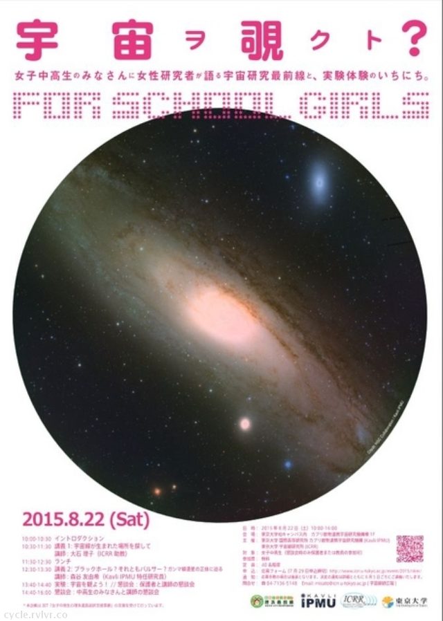 東京大学柏キャンパスの宇宙線研究所(ICRR)と国際高等研究所カブリ数物連携宇宙研究機構(Kavli IPMU)は、宇宙に興味がある女子中高生向けのイベント「宇宙ヲ覗クト?」を8月22日に開催する。参加費は無料で、事前申込みが必要。