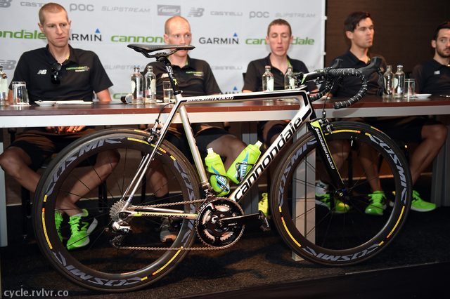 アメリカのキャノンデール・ガーミンは、2015年ツール・ド・フランスで使用するニューバイク「キャノンデール・スーパーシックスEVO Hi-MOD」とツール限定ジャージを7月2日の記者会見で披露した。