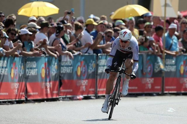 2015年ツール・ド・フランス、7月4日の第1ステージ個人タイムトライアル。この日の優勝候補最右翼だったドイツのトニー・マルティン(エティックス・クイックステップ)だが、優勝したローハン・デニス(BMCレーシング)から5秒差の2位に終わった。